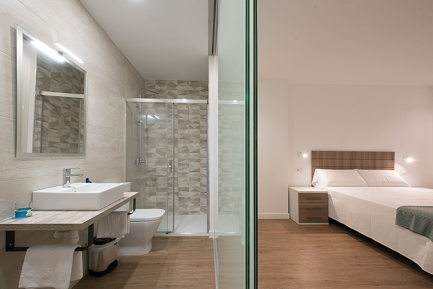 Hostal moderno de amplias habitaciones a 50 metros de la playa.